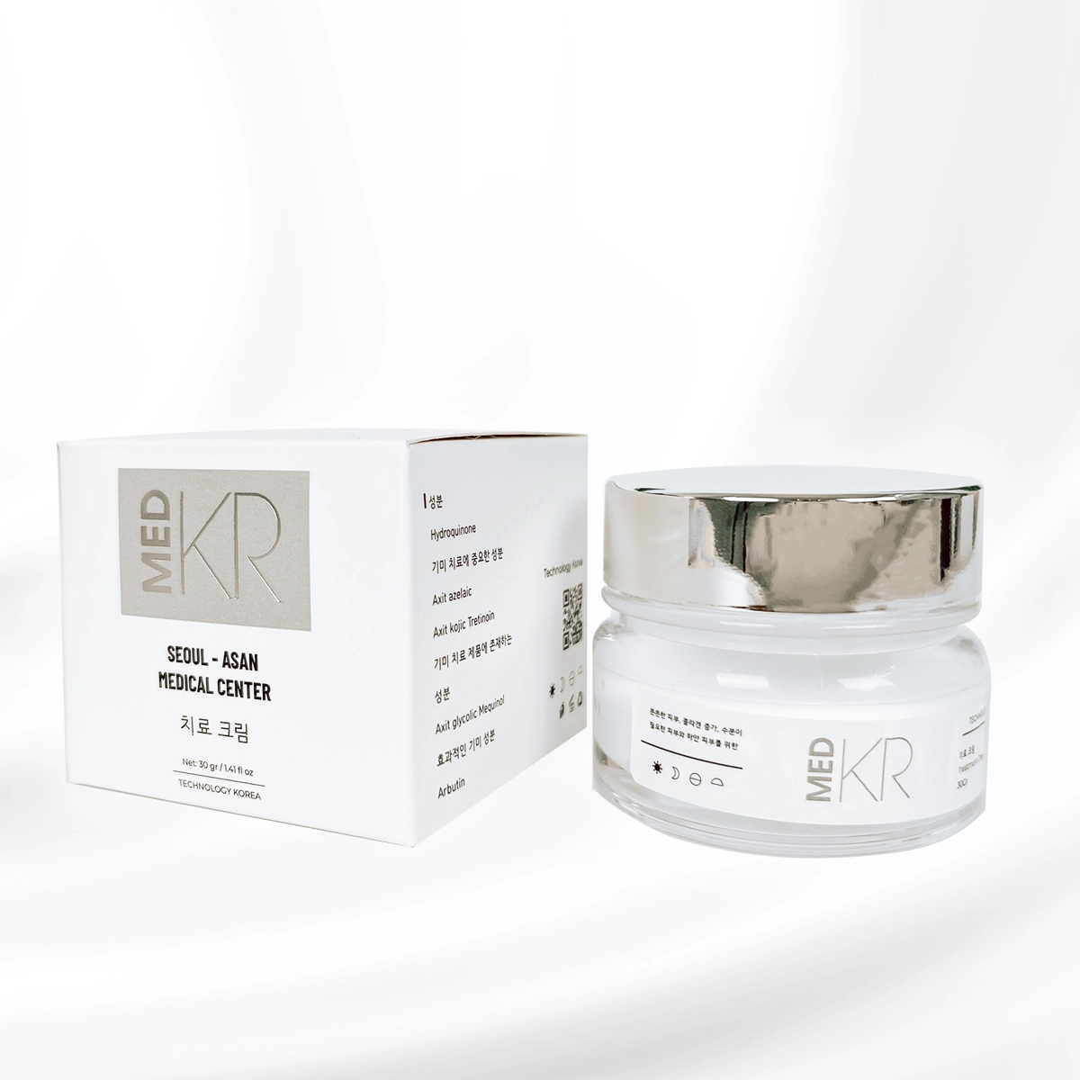 Kem điều trị nám Melasma Treatment Cream MEDKR là sản phẩm chứa Hydrquinone, Axit azelaic, Axit kojiic Tretinoin giúp làm trắng da bằng cách ức chế sự hình thành melanin, chống lão hóa, đem lại làn da sáng bóng, mịn màng.